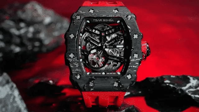 Official TSAR BOMBA Elemental Series Automatic Mechanical Carbon Fibre Watch TB8208CF