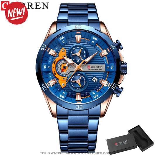 Curren Chronograph Sports Waterproof Stainless Steel Quartz Luminous Wristwatch