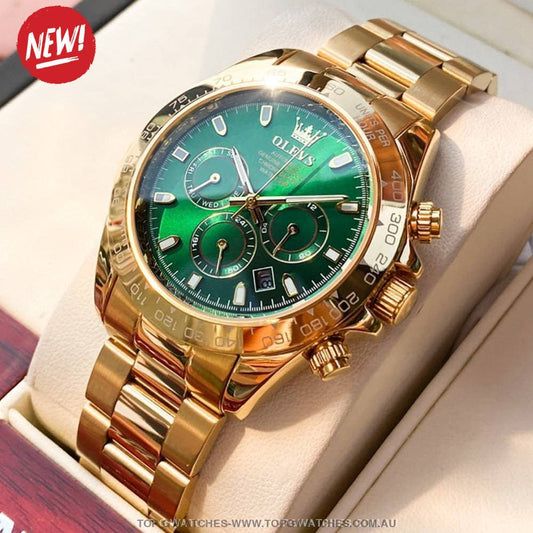 Elite Gold Luxury Olevs Automatic Mechanical 30m Business Casual Chronograph Wristwatch