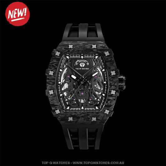 Official TSAR BOMBA Elemental Series Carbon Fibre Automatic Mechanical Waterproof Watch - TB8207CF