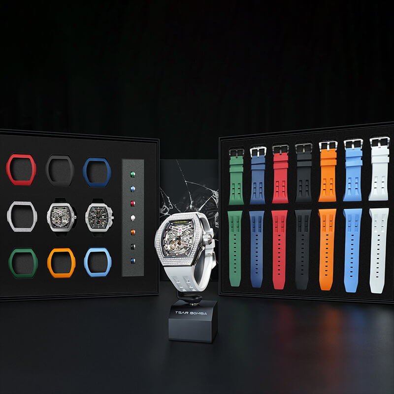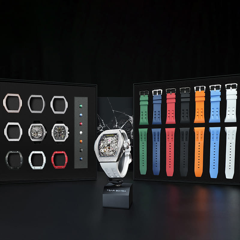 The TB8218D Multi-7 set includes enough accessories to build multiple complete watch looks straight out of the box. It's the ultimate creative luxury watch for collectors and enthusiasts who love flexibility and expression.