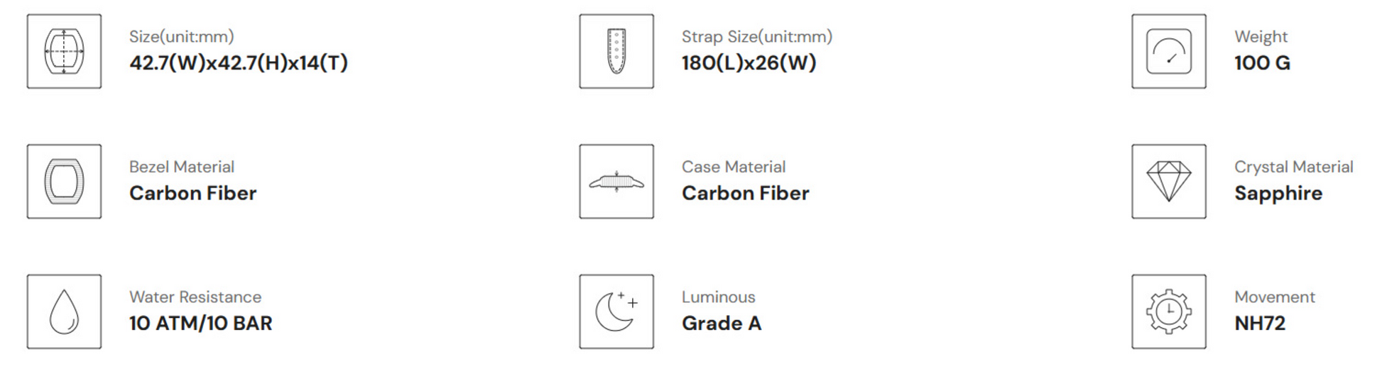 The Tsar Bomba Electron TB8401 is sculpted from premium carbon fibre, delivering unmatched strength and lightweight performance. Its bold geometric design and dynamic silhouette showcase cutting-edge watchmaking engineering — a luxury timepiece crafted to command attention and elevate your style.