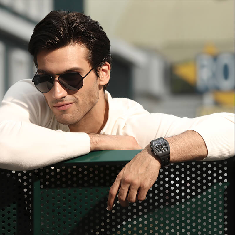 The TB8214 supports Tsar Bomba’s high-performance FKM fluoro-rubber straps — hypoallergenic, sweat-resistant and engineered for extreme durability. The perfect upgrade for sport, travel and everyday wear.