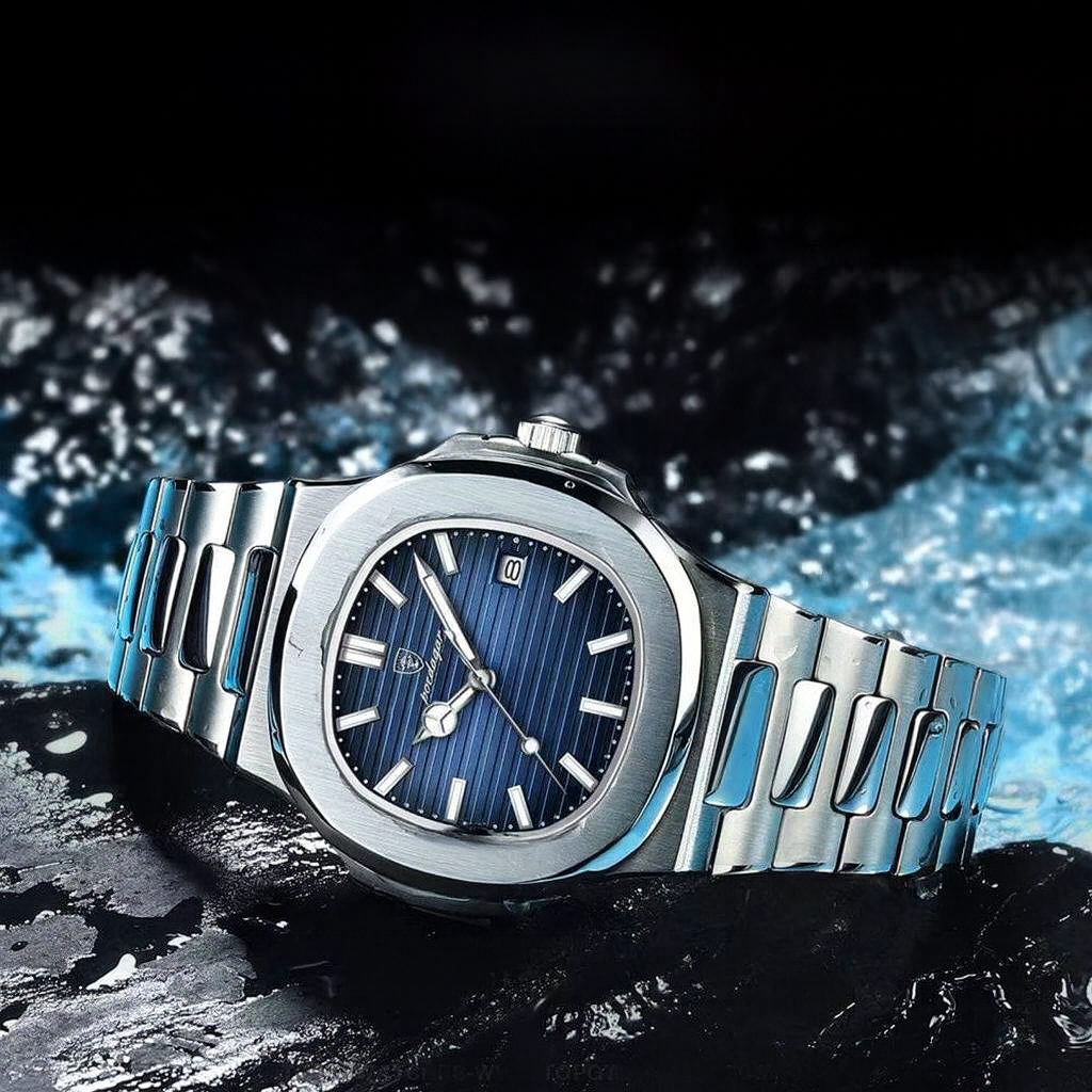 全新 POEDAGAR 豪华商务夜光钢制方形石英潜水表